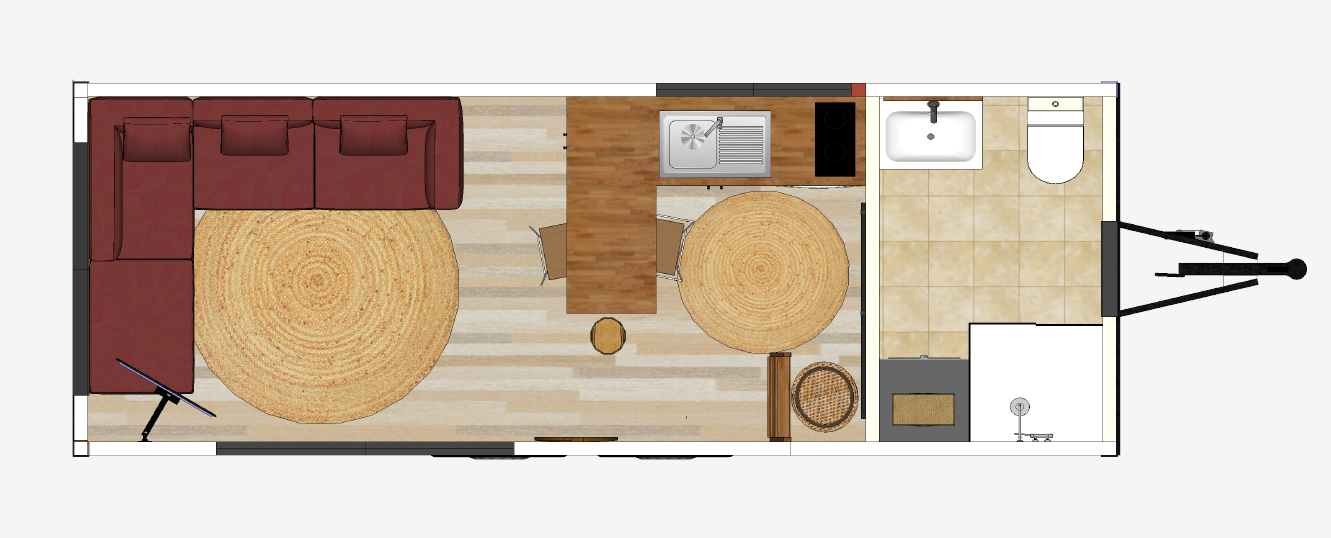 - Salon + Mutfak : 12 m²Loft kat : 6 m²Banyo : 3 m²