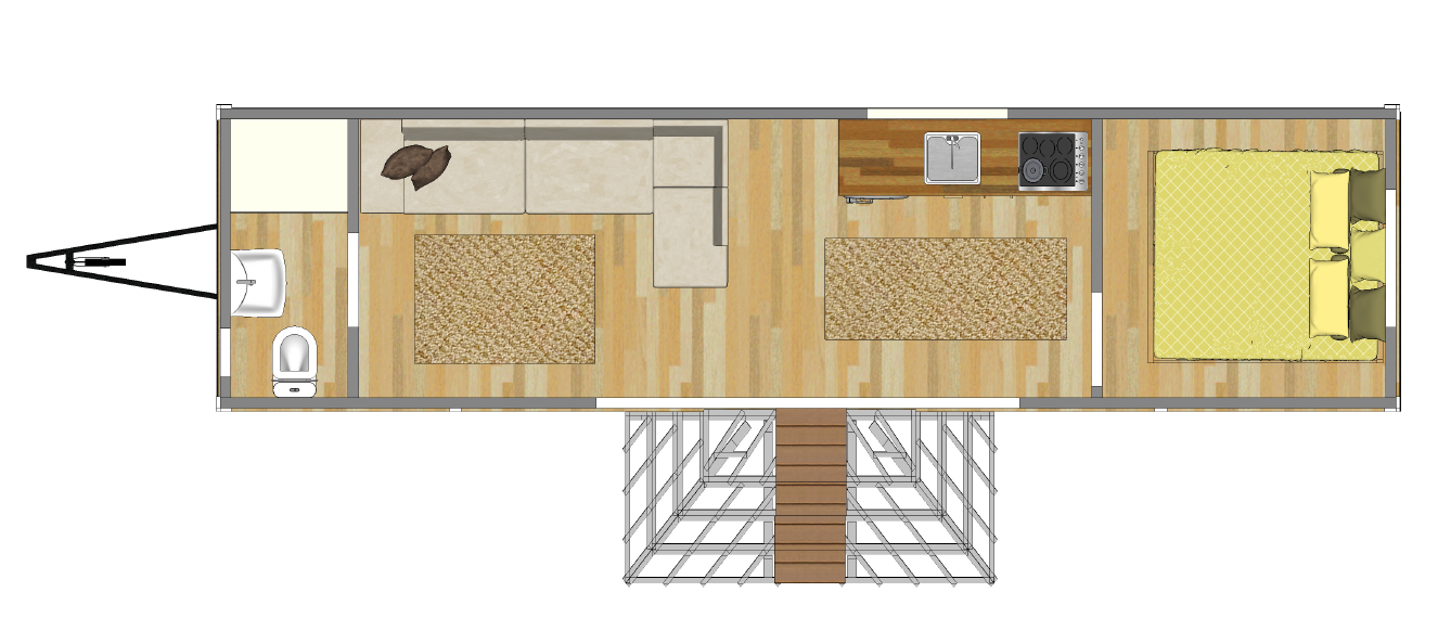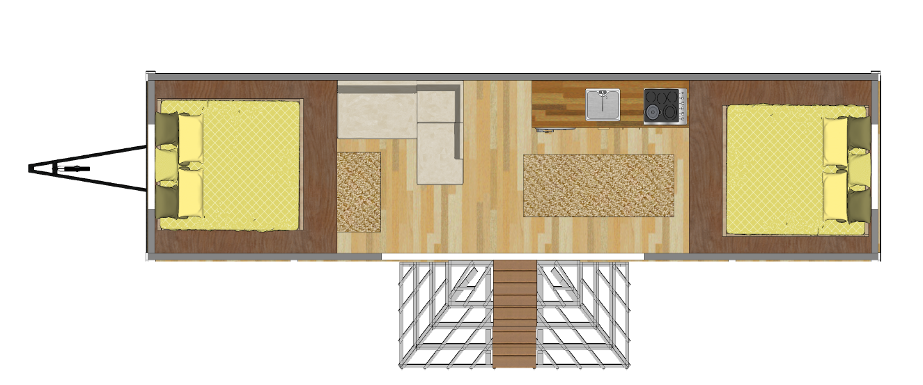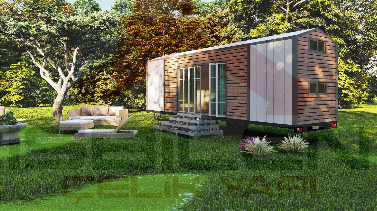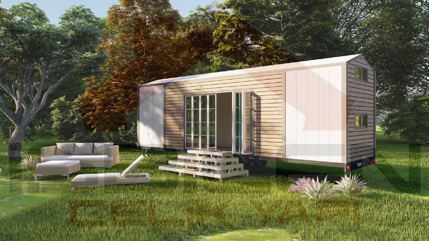- Salon + Mutfak : 15 m² İki adet Loft kat : 12 m² Oda: 6 m²